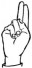 На ћирилици написано САЊА ГЛУШИЋ састоји се из 10 слова [?]. Исписано ћириличном једноручном азбуком за глувонеме: